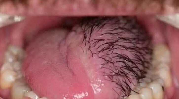 This is hair growing from a skin graft used to reconstruct a tongue damaged [devastated] by cancer.