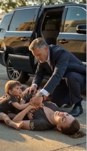 A sleek black SUV slowed to the curb. The tinted window rolled down, revealing Jonathan Pierce, a billionaire entrepreneur in his early fifties. He had been heading to a meeting, but the sight of two desperate children beside their unconscious mother stopped him cold.