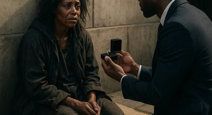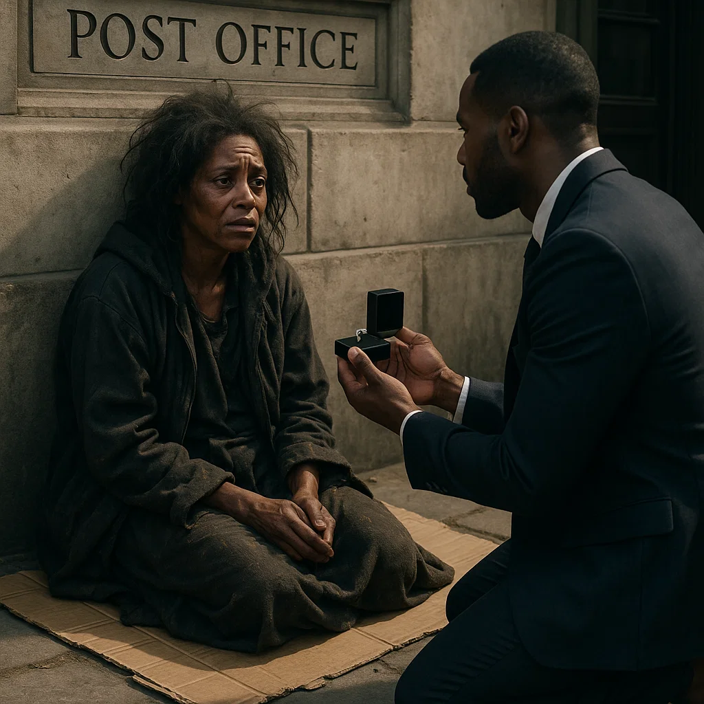 He spotted the woman sitting near the post-office wall, her eyes vacant, her humming soft but constant. Rain clouds gathered overhead, dimming the afternoon light. Daniel adjusted his hair, slipped a plastic toy ring from a novelty shop into his pocket, and approached her.
